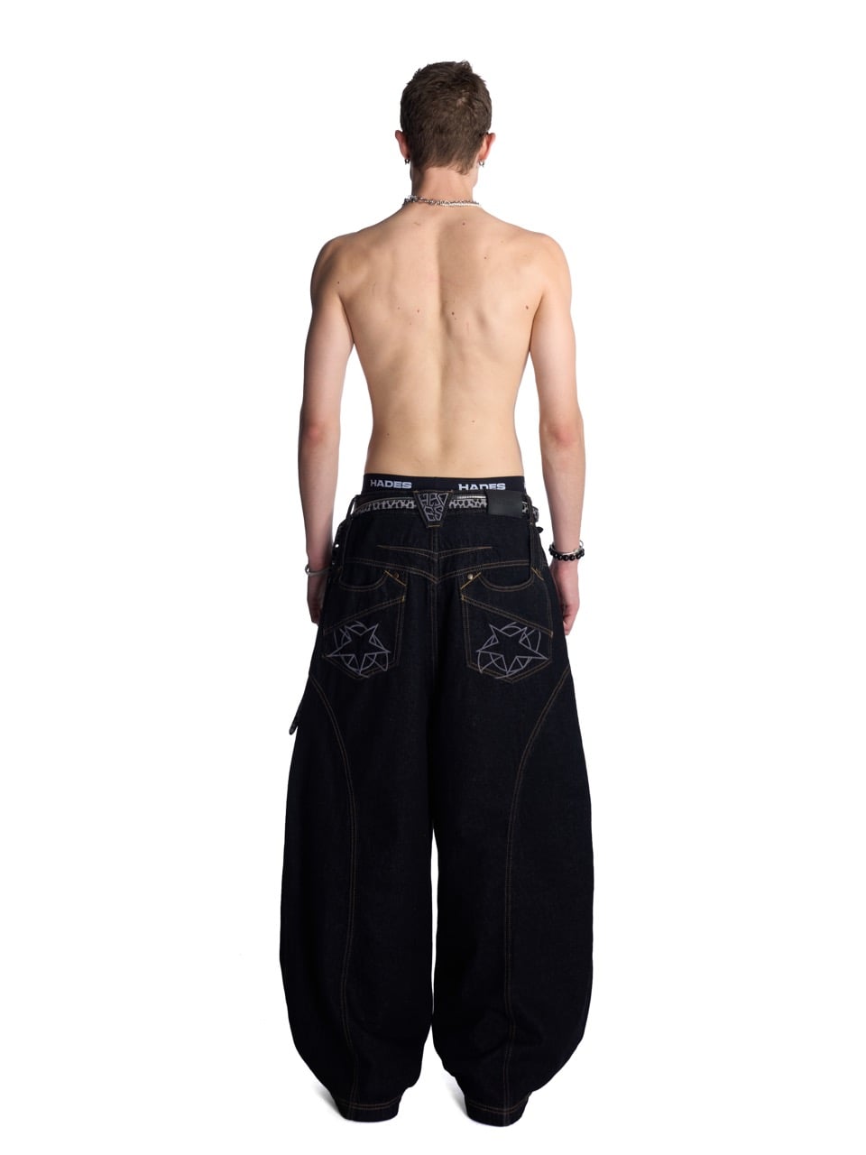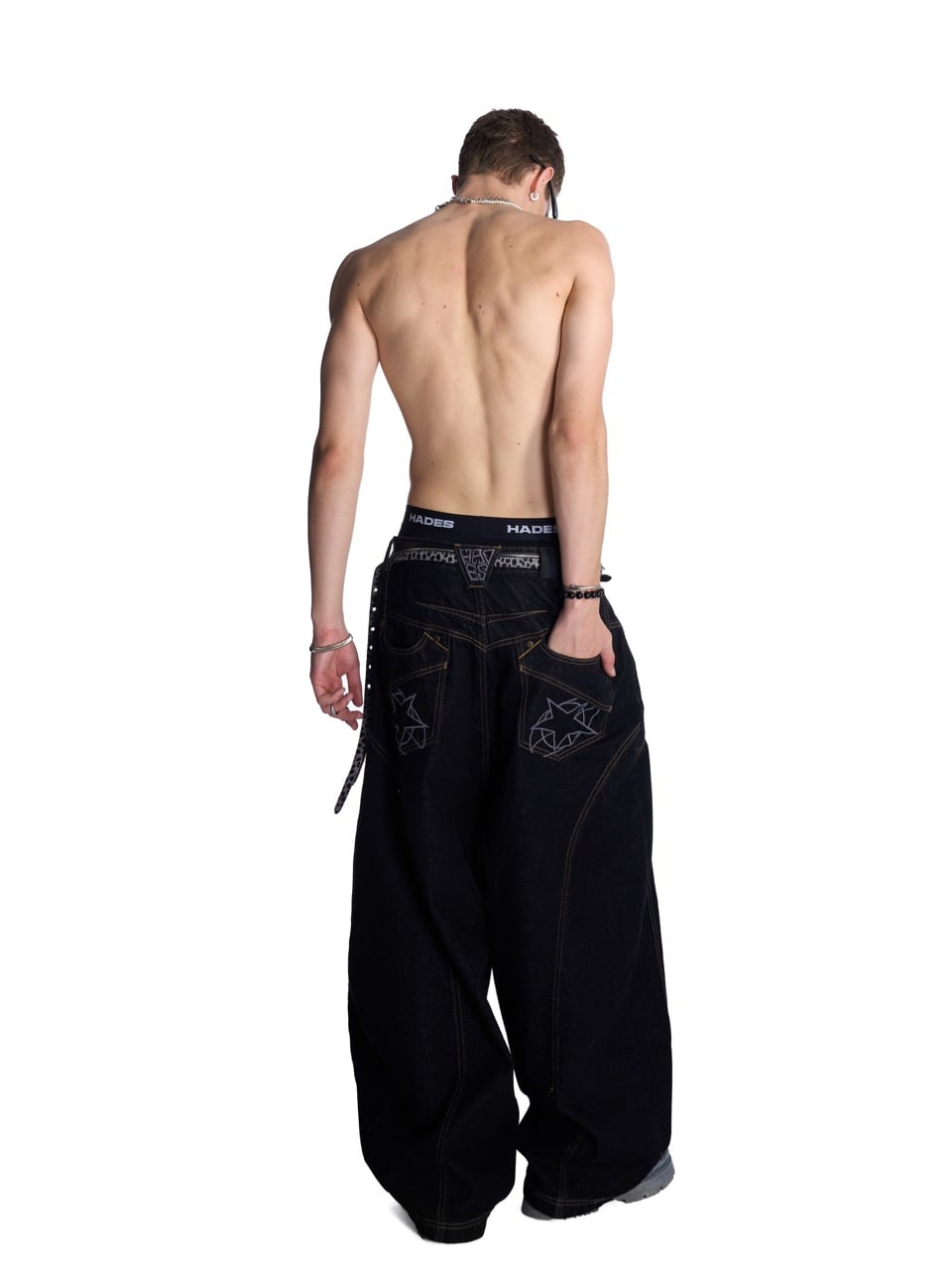 • Quần form suông rộng, cạp cao, độ dài phủ gót