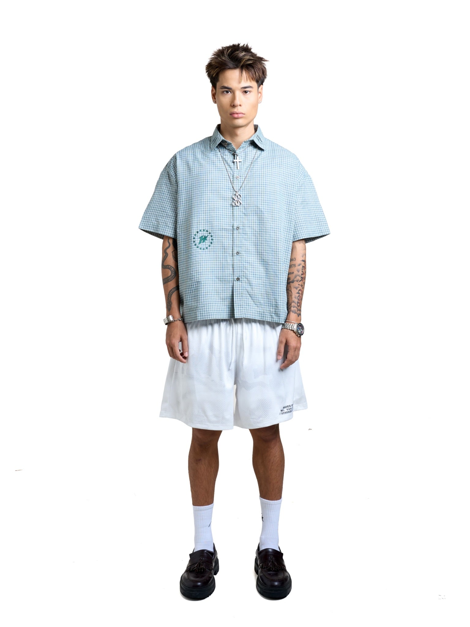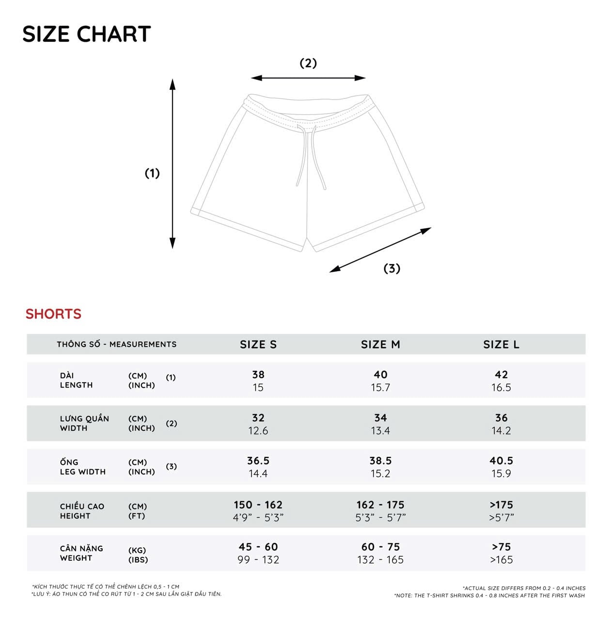 • Quần form thể thao, rộng và trên gối.