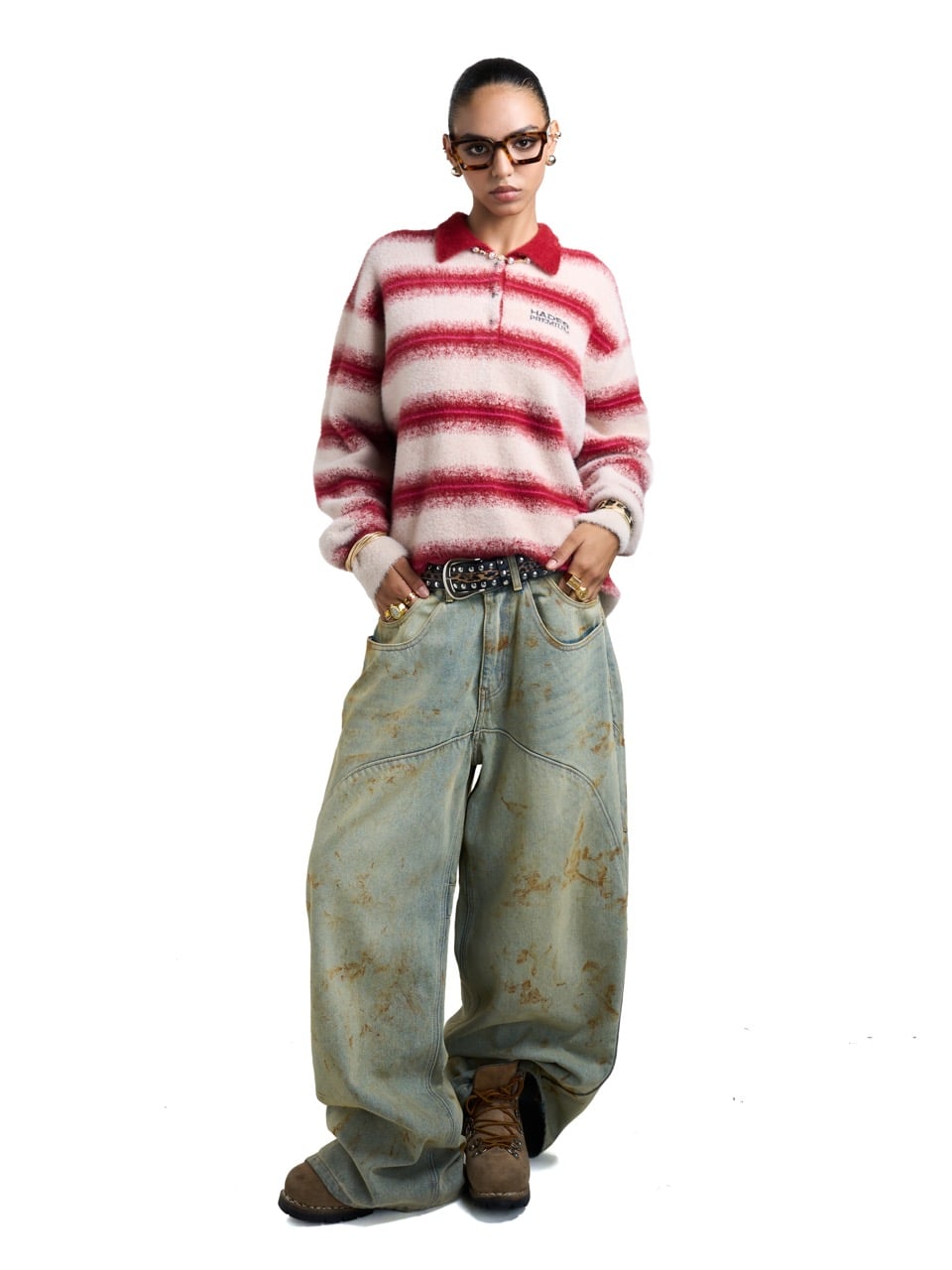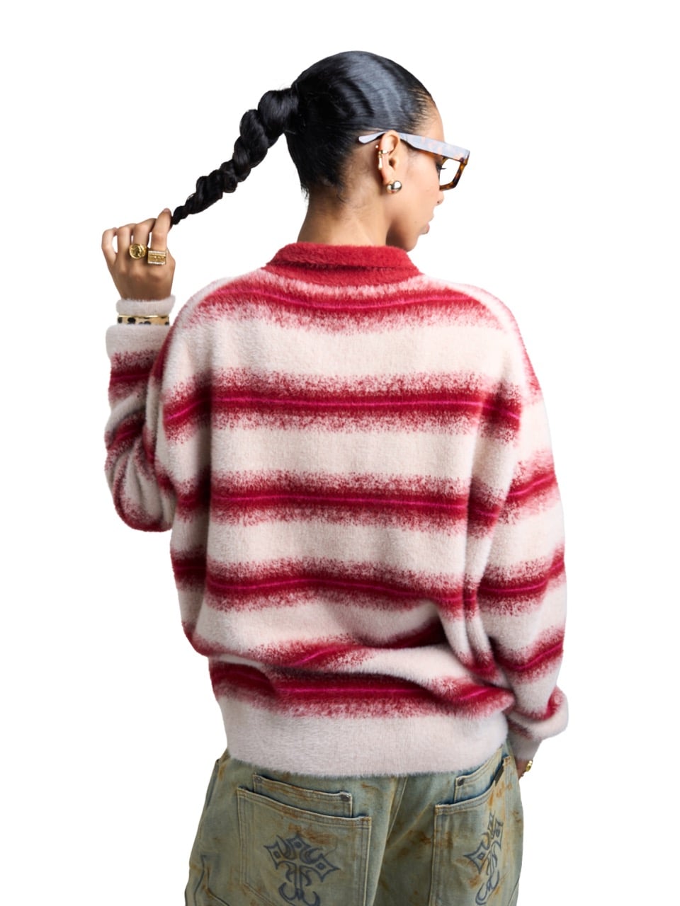 • Sọc ngang brushstroke đỏ - kem mềm mại