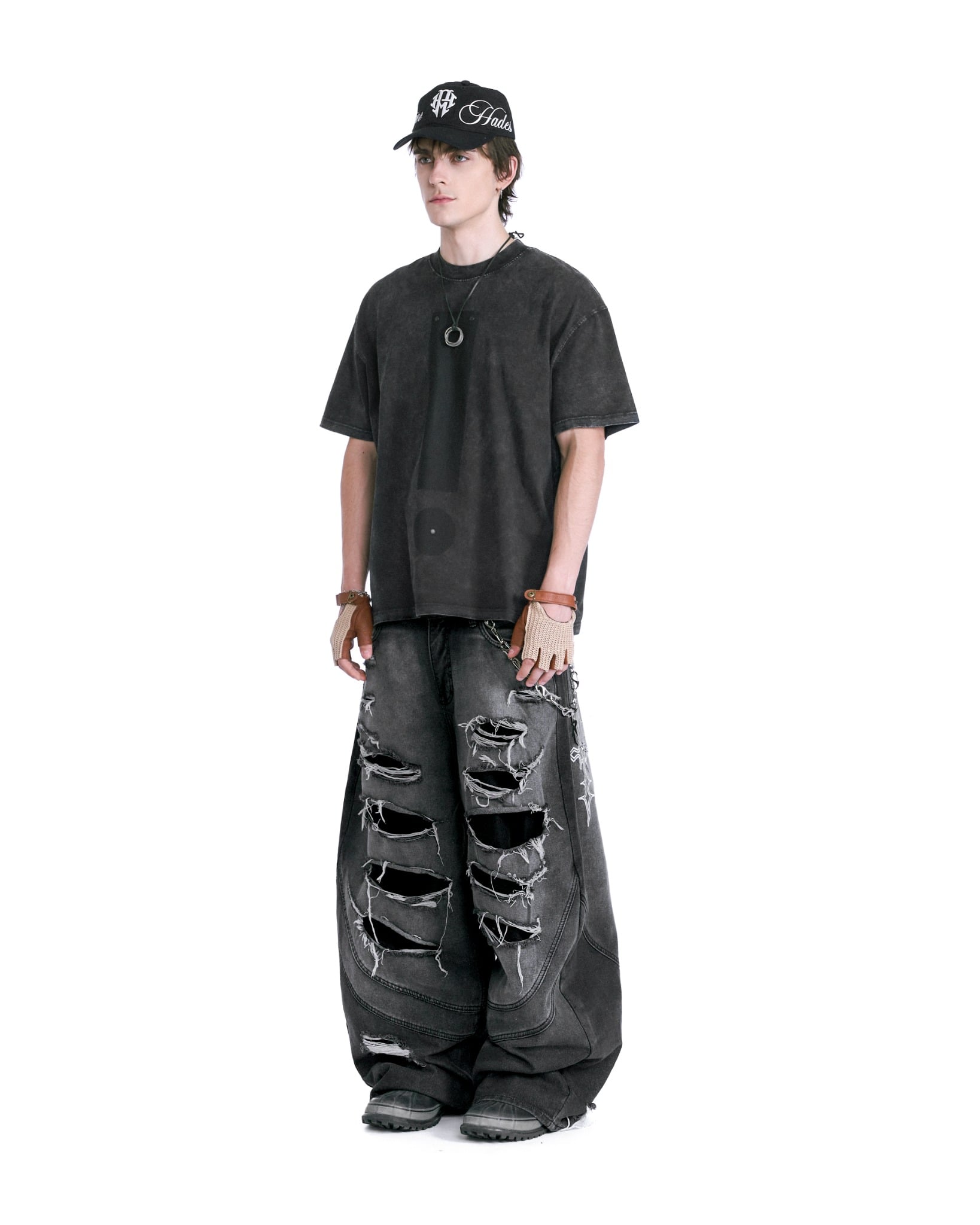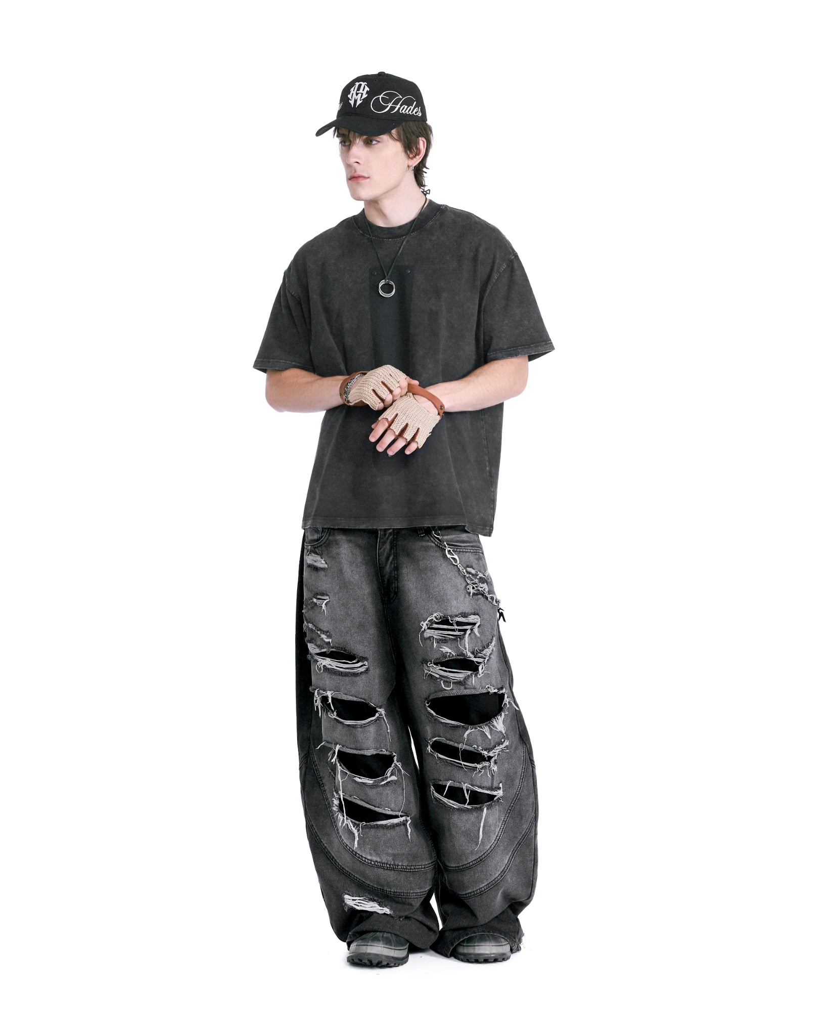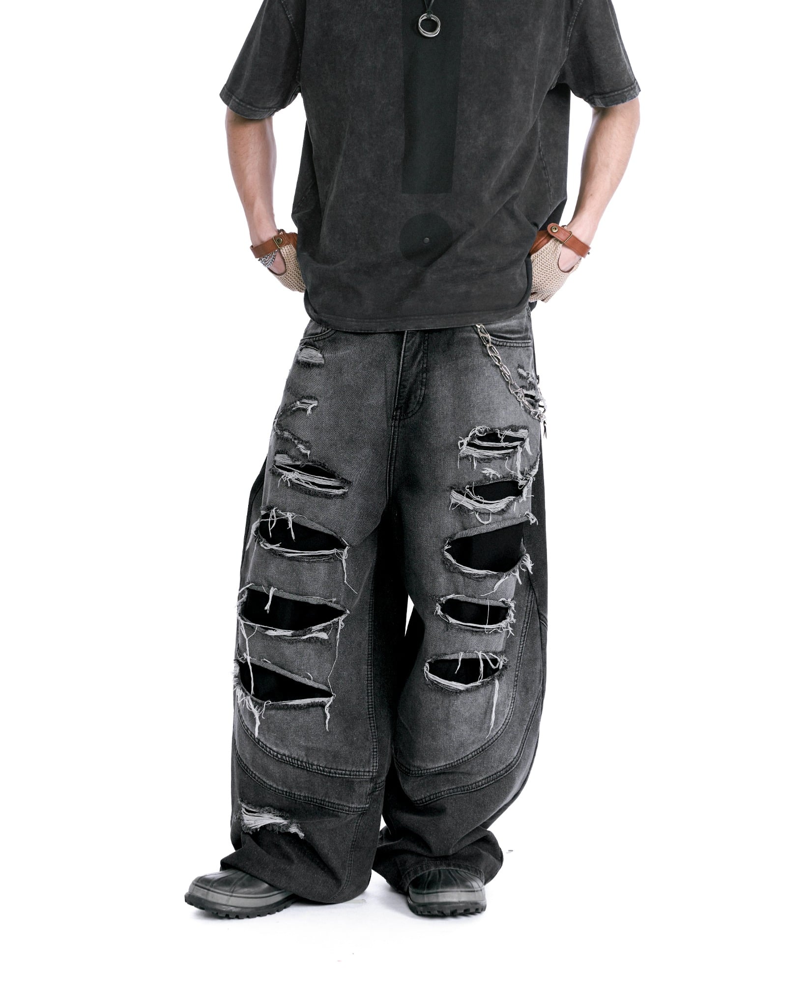 - Thiết kế rách lớn nhiều mảng, xử lý tua chỉ thô