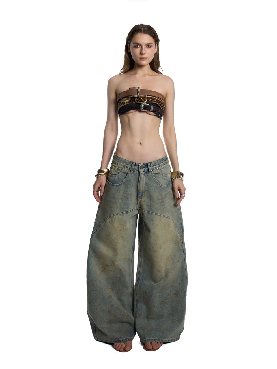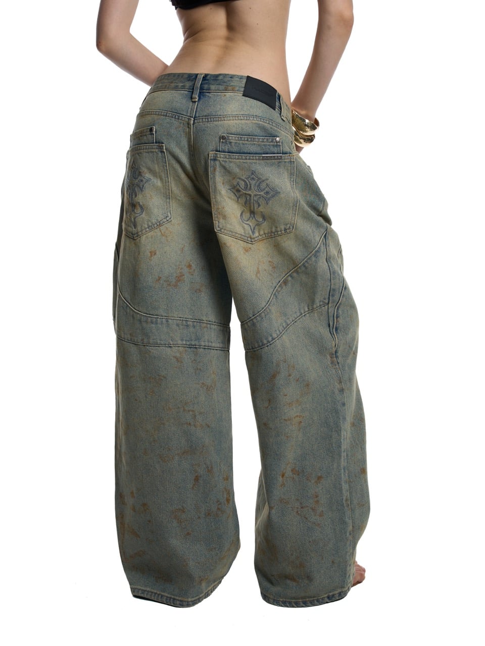 • Quần jeans form suông, cạp quần trễ, độ dài phủ gót