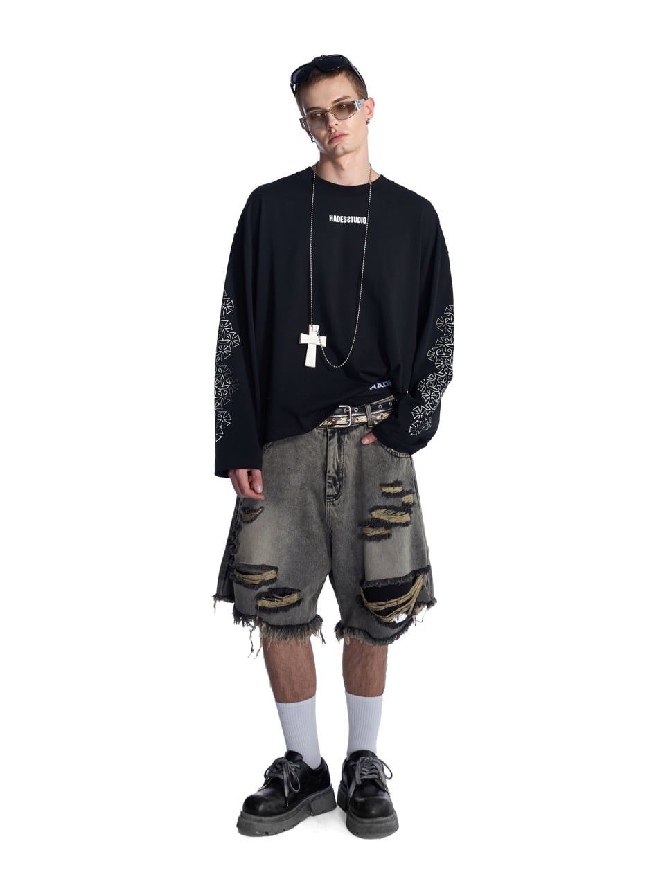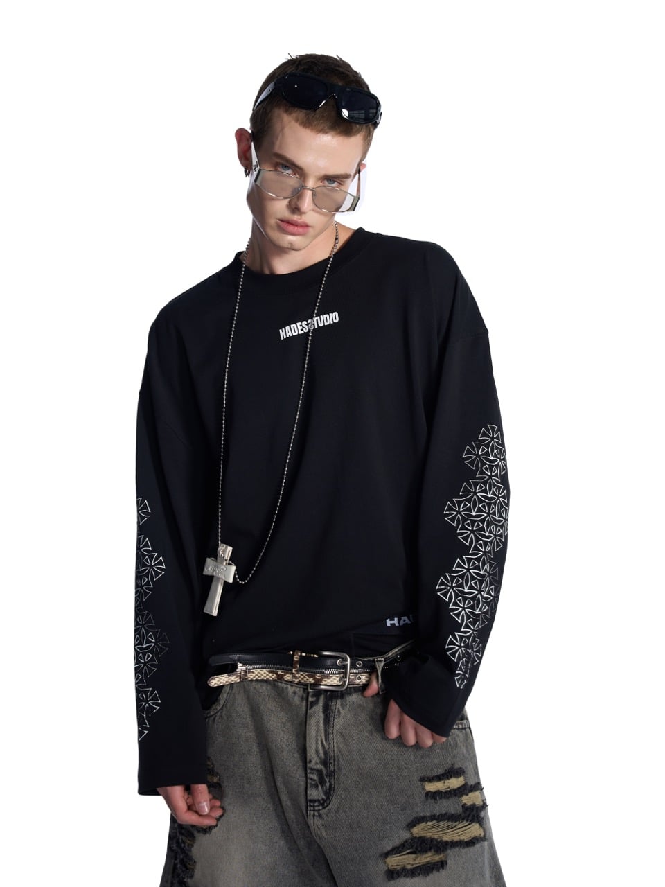 • Tay áo bo nhẹ, in hoạ tiết hình Graphic chạy dọc tinh xảo