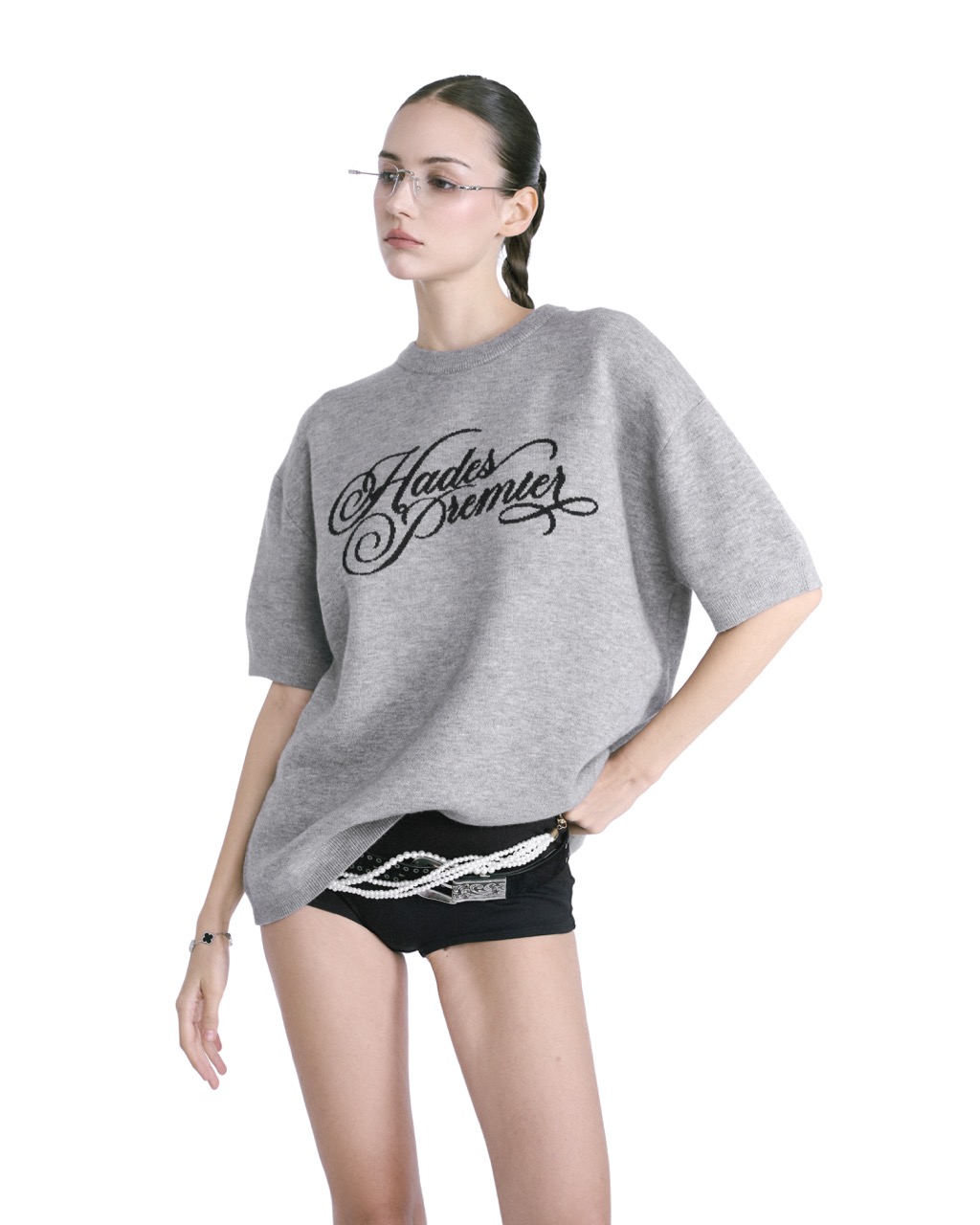 HADES STAMPED KNITTED TEE - GREY